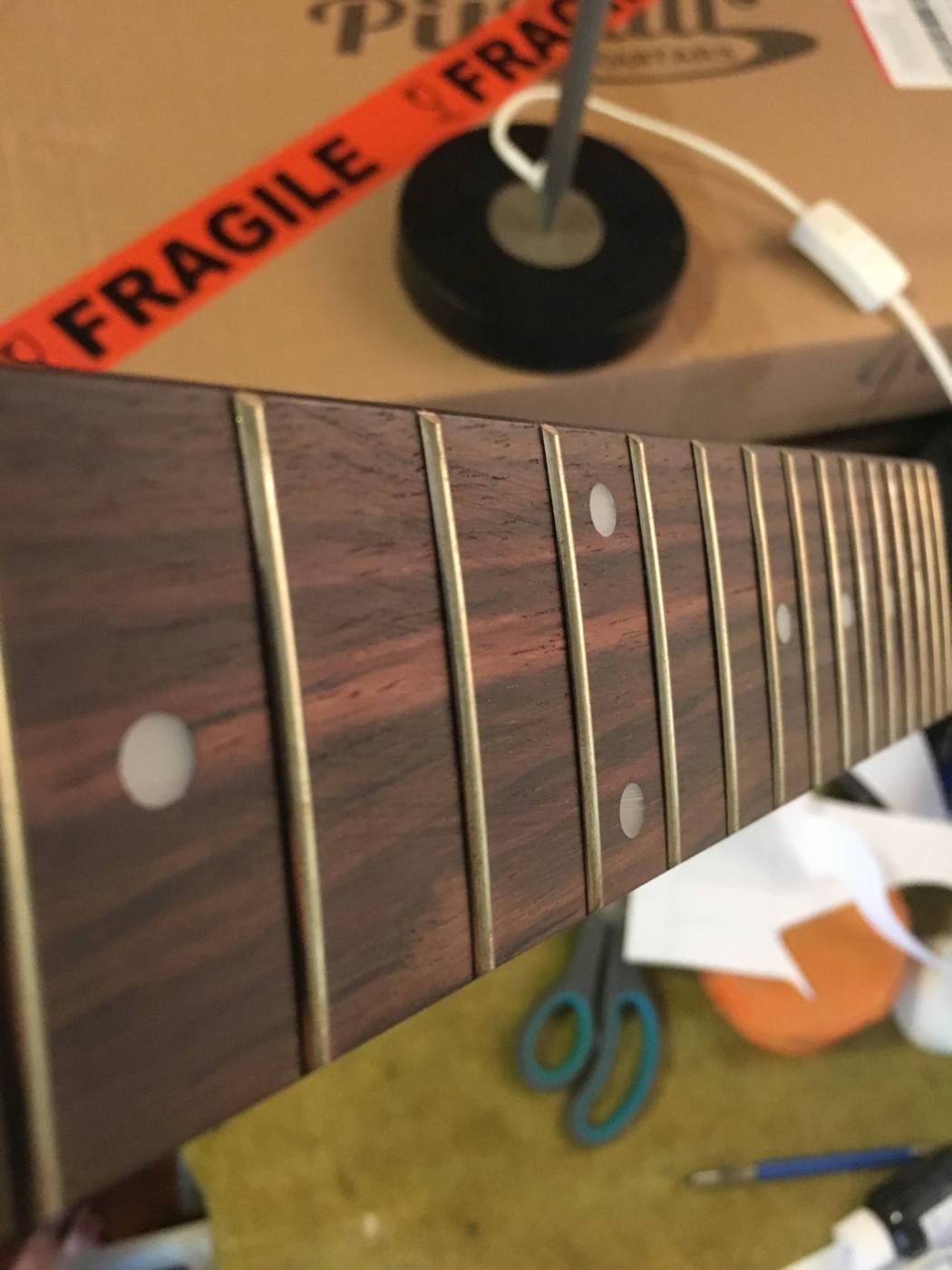 Any advice as well on sanding the fret board before finishing with clear dingo tone?