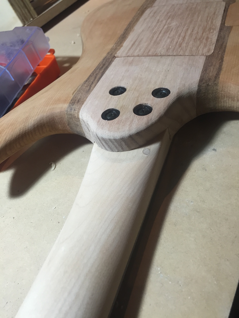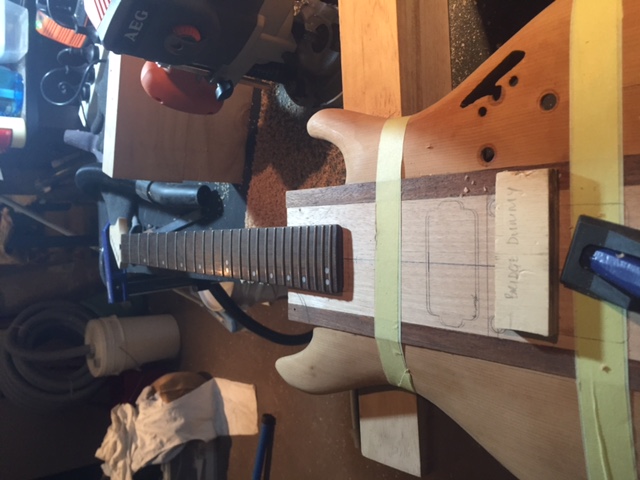 In my mental arithmetic, the floyd can be sat a little proud of the body, with a minimal recess rout for its action on the body front. I sourced a Trem with the shortest block i could get (32mm, still a heavy F$*^er compared to the fixed bridge that was on originally). Through mud maps and sketching things out i had figured that i could JUST squeeze it in.