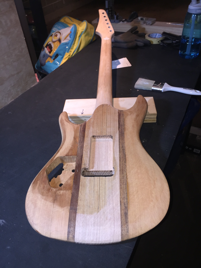 A Floyd, in an already skinny guitar body (36mm front to back give or take), with a recessed timber cover.