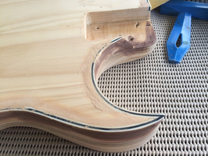The Binding. Nothing much to share here except that I used a Gel CA glue to attach the binding to the body of the guitar. I have no experience with binding but I found that the Gel CA did not soak immediately into the wood as opposed to normal CA glue, and gave me a lot more working time to position the binding.