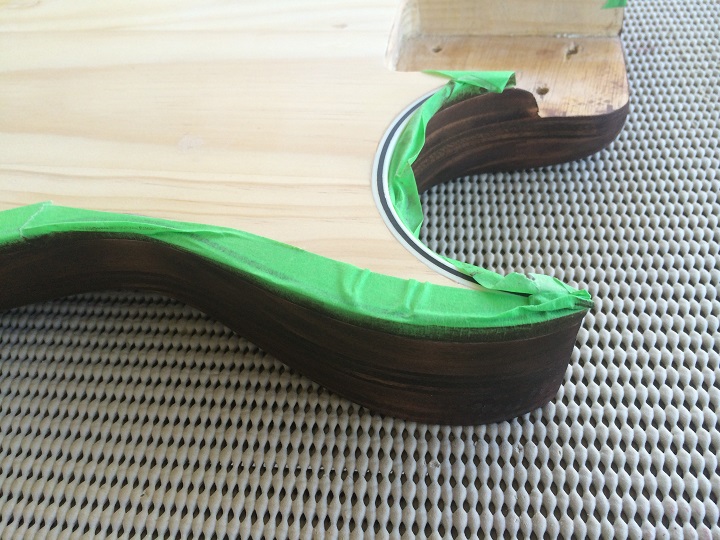 Then I taped up the binding on the neck and the guitar and applied the stain.