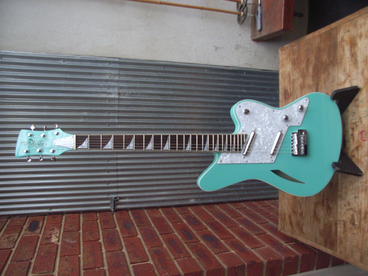 This is lovely. Really dig the head stock and the off white binding on the turquoise.