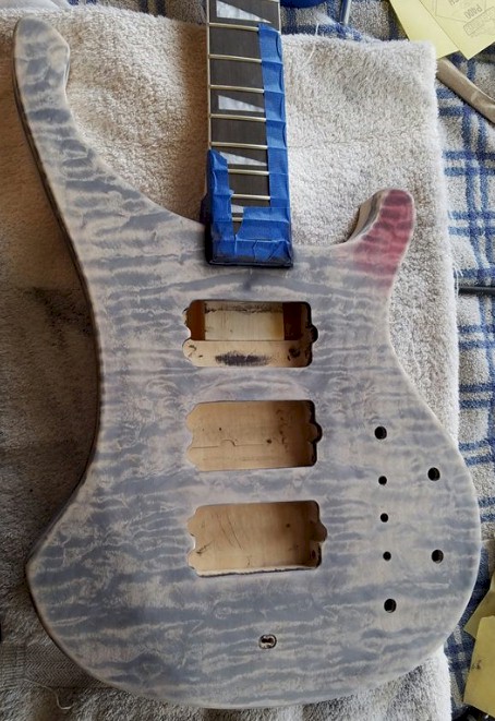 My wife suggested just finishing it black, but no...that's not the picture I have in my head, and certainly not worthy of this project. I have a fairly big piece of the leftover 1/4" top that I was going to use for a control cavity cover, AND access to a planer...I am definitely going to see if I can plane it down to a thin piece and use that instead. Sanding this veneer off is going to be a pain in the arse, but a bass player's gotta do what a bass players gotta do...