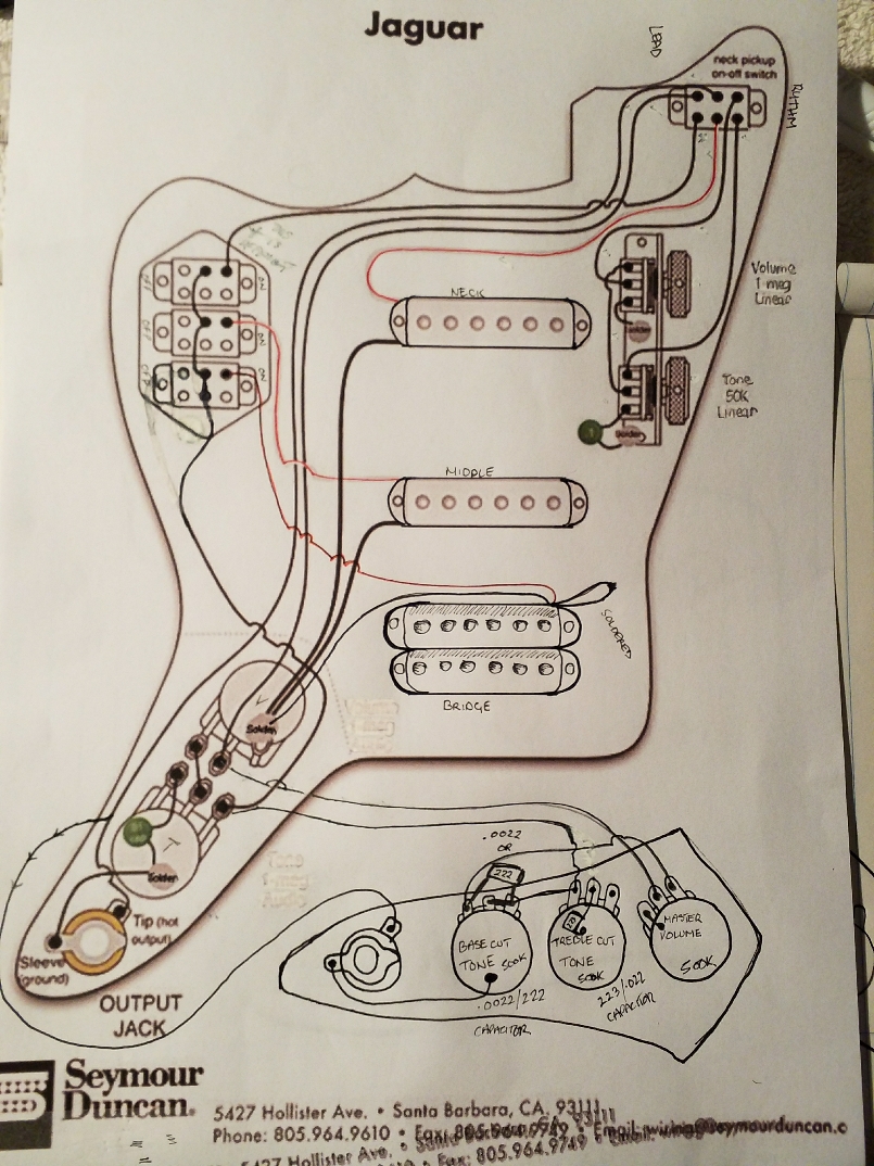 A slightly modified version of the standard one. Instead of a strangle switch ive used it for an on/ off switch for the humbucker.