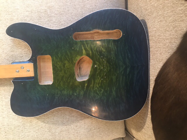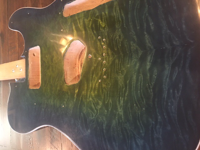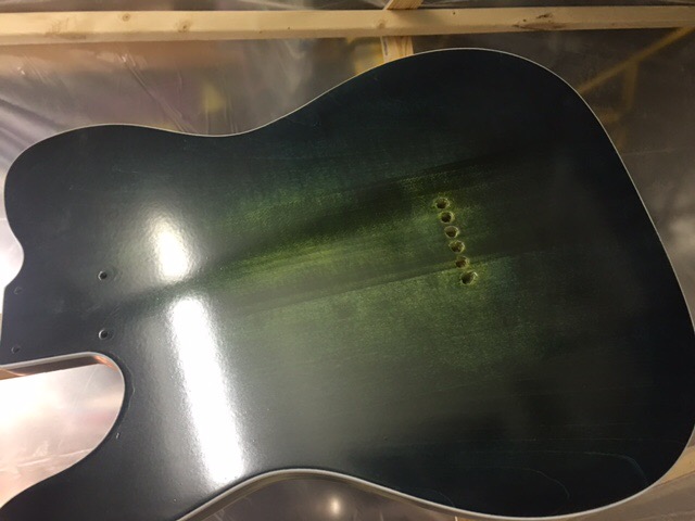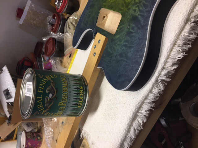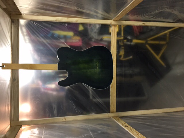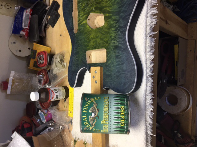 Here are a couple pics of the clear coat progress. I have 6 coats of poly, level sanded and left overnight. I got two more coats sprayed on tonight. These two coats went on much better than the first 6. I am basically a newbie on spray equipment except airbrushing some gun stuff. I got the gun adjusted better for these two coats. I will sand back again tomorrow and try and get 2 more coats oneach couple of days until I get built up like I want. Sorry for the bad lighting but you can get the idea.. I have a couple of places that I bumped when moving it so I will have to sand them out and build back up.. I can see the end in sight..