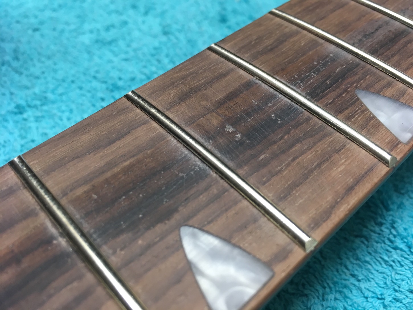 There are a few pits in the fretboard that I'm unsure what to do with. Reckon they need filling or just oil it up as is.