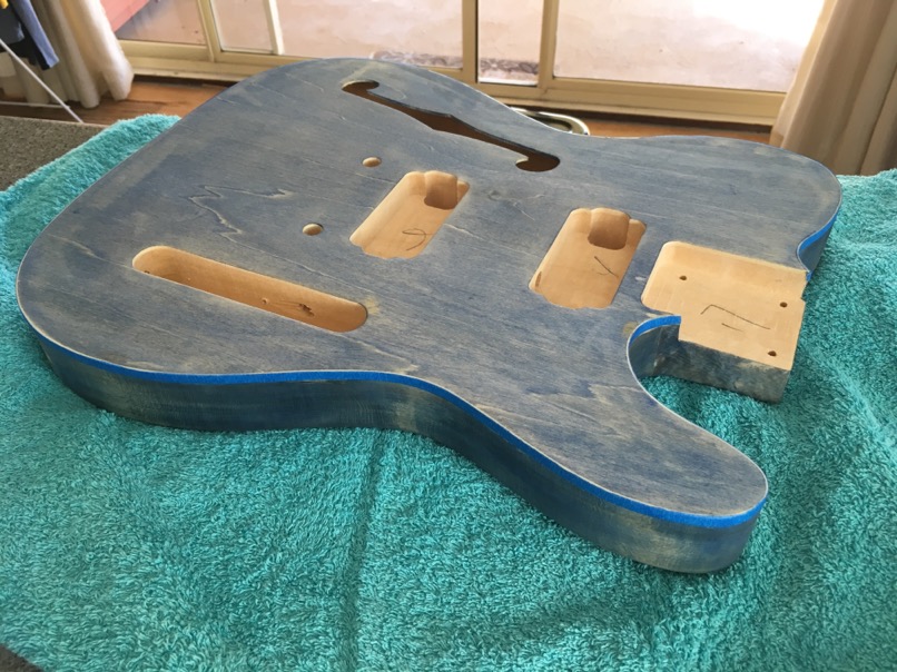 I'm not too worried about it as I wasn't 100% convinced on the colour before I started. I'm only $30 and a couple of hours in the hole. As you say I'll paint it in enamel as the dingo tone is oil/wax based so just need to spend some time and cabbage at my local repco or SCA. I don't have a red or white guitar so they're the front runners ATM.
