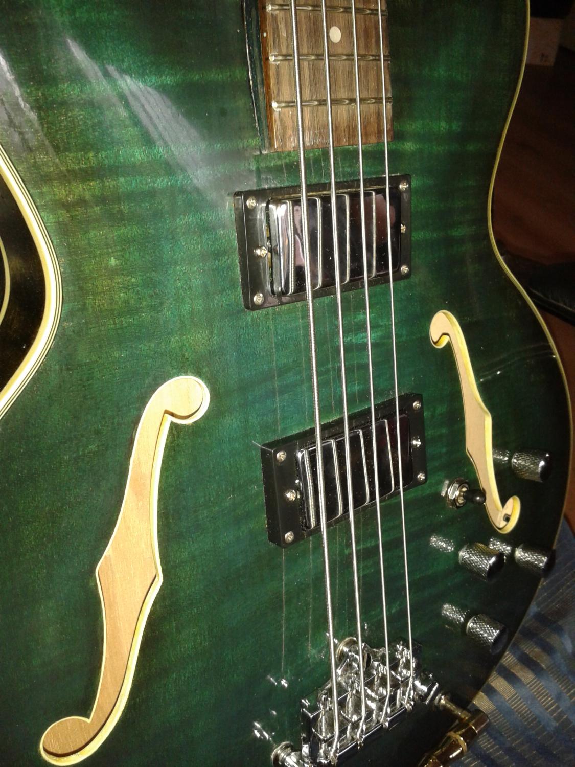 IB-5's always look great, and this is no exception. It's just a sexy bass. The colour looks good on it, although it appears there are some glue marks the were reluctant to take stain. Clean, functional and groovy. The fretboard appears a little dry and I think it would enhance the overall look with a bit oil lubing and darkening it. Well done.