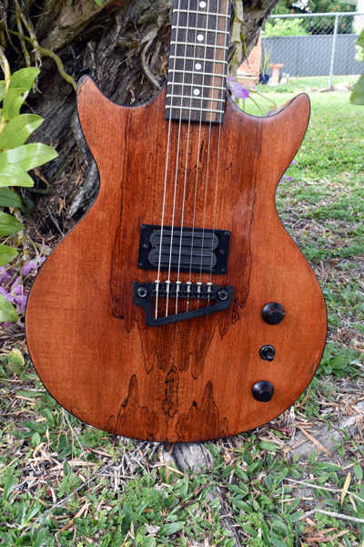 The guitar was finished with tru oil, with a gloss finish on the front and a matte finish on the back and neck.