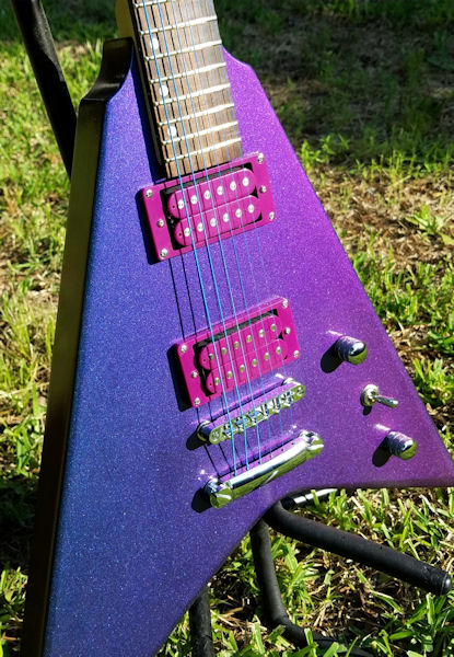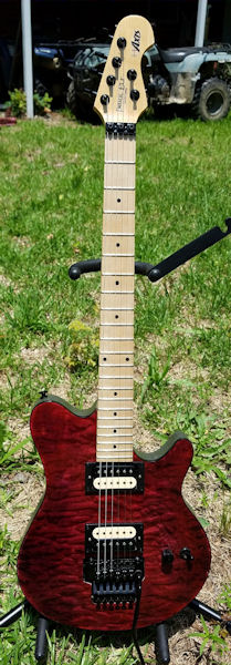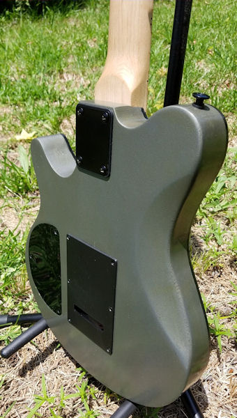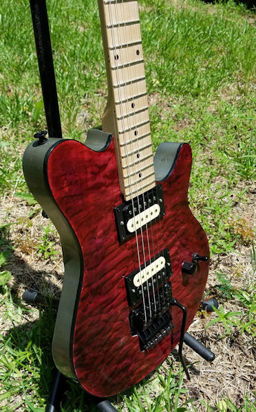 After that, it's just the little things -- cavity covers, etc. I'll definitely be adding a string retainer bar at some point. Most of my Floyd guitars have them, and after stringing this one, I see why. I found it pretty difficult to get a tight wrap as the string kept wanting to slide upward. I'm also 100 percent sure a Floyd upgrade is coming if I decide this one's a regular player. String blocks popped out of this one every time I moved it while stringing it up. I spent a lot of time on the floor trying to find where they bounced. Other than those little issues and the high action, though, it seems pretty solid at this point.