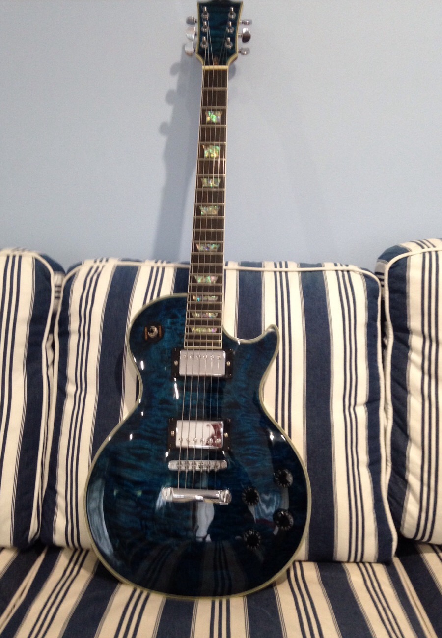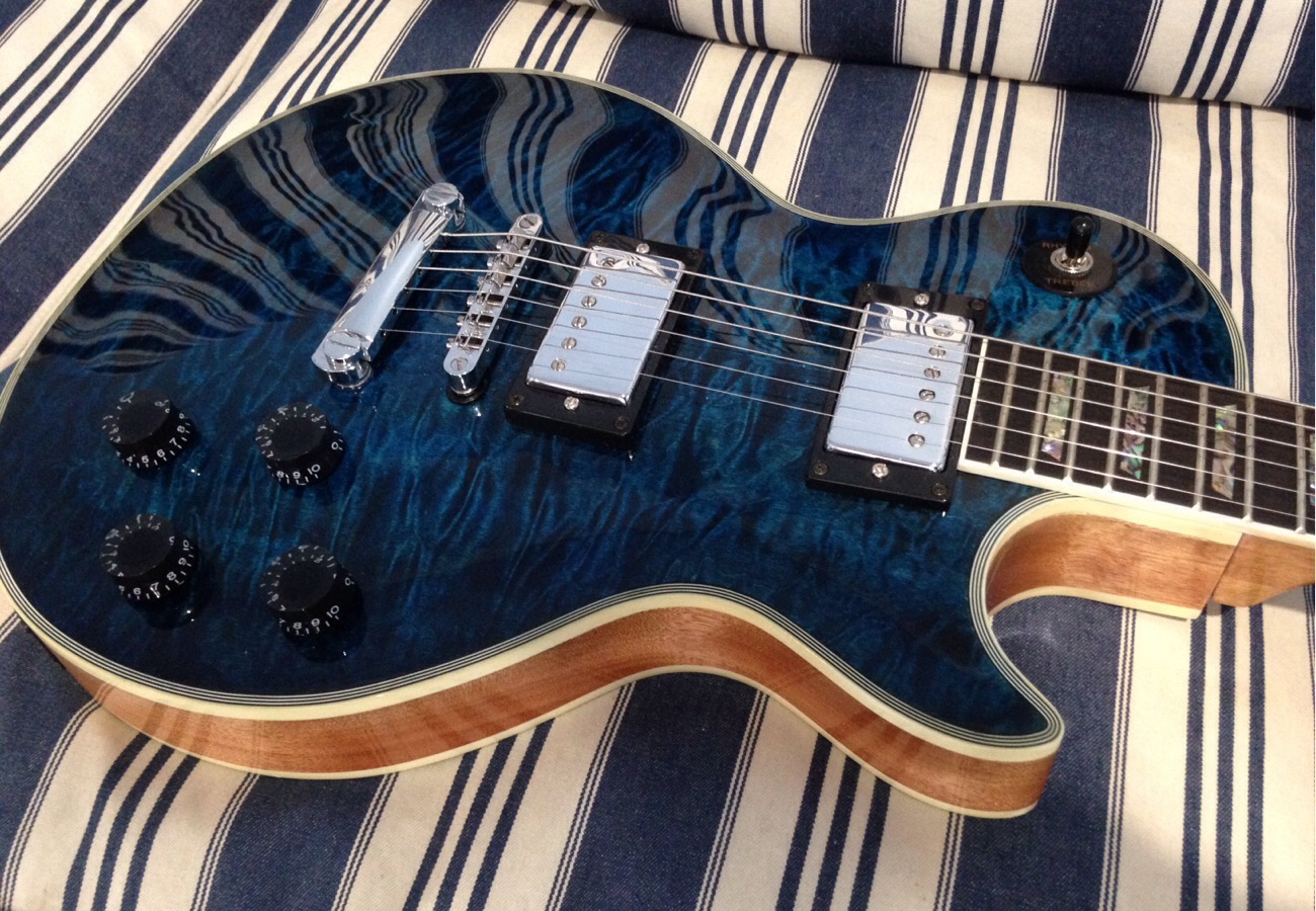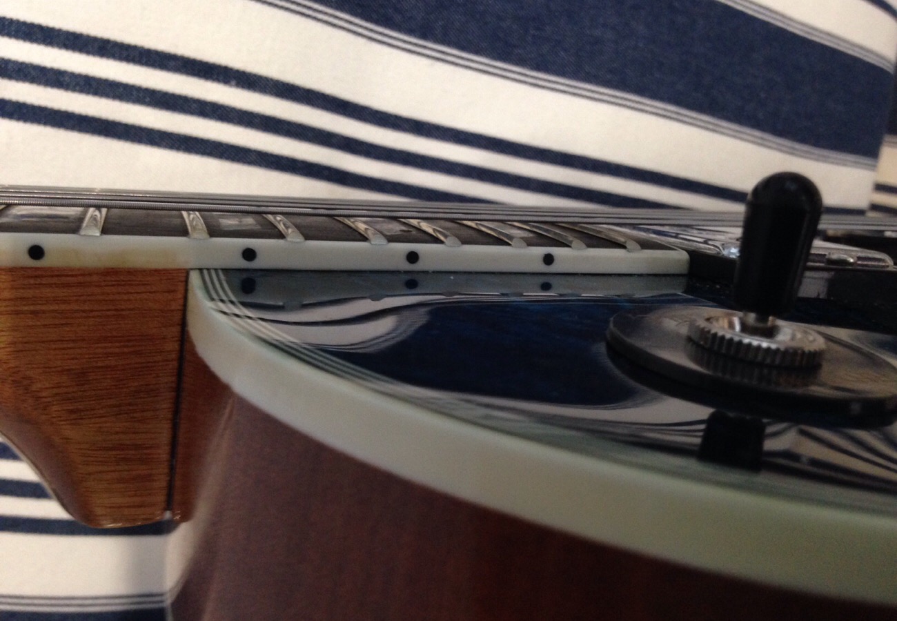 Interesting to note that Tung Oil did not discolour the blue too much however there is still an aged yellowing around binding on the headstock that gives a hint as to what level of inherent colour it has. If Tru Oil was used I reckon we would be looking at a Peacock Green/Blue finish as it does have a much darker base tint.