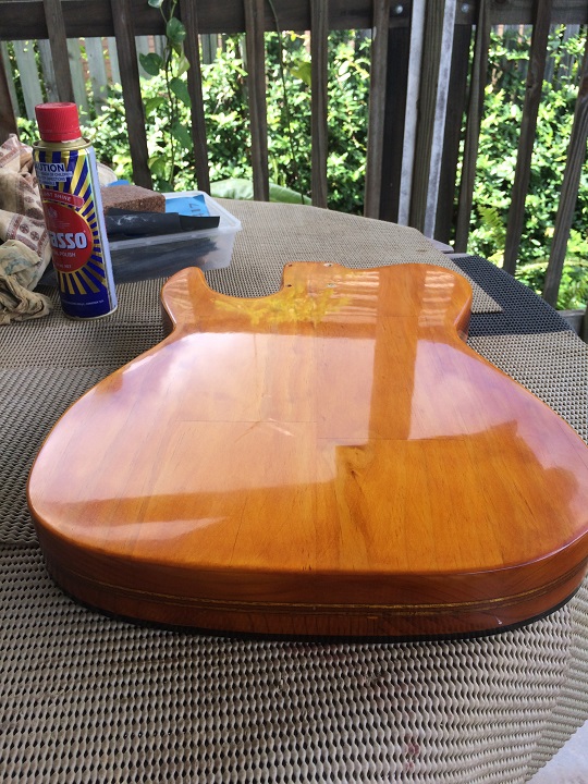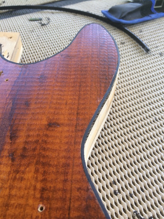 Although not perfect if inspected closely, I am fairly happy with how its turned out so far. The flaws that are still there would not bother me if it were my guitar, but I have set myself a higher standard for Bev as it means so much to her.