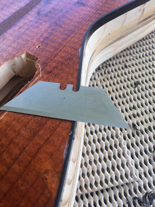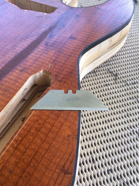 I painstakingly scraped every glue spot with the blade until I got down to the level of the varnish. Fairly happy with how it turned out.