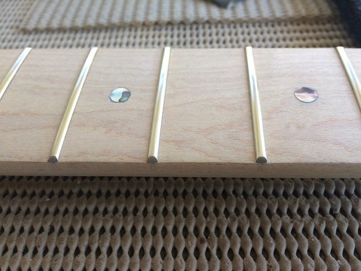 The final step is probably the most tedious. This is where the final adjustments are made. This is done with nut in place and the strings on the guitar.