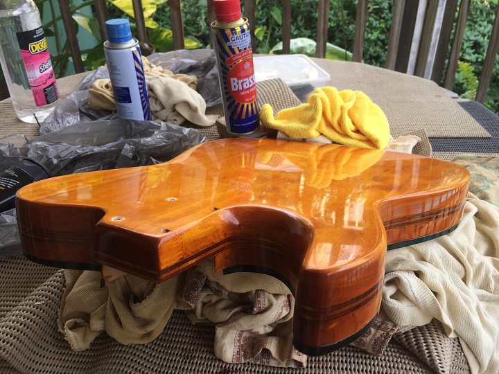 As I mentioned earlier I have used MinWax Wipe-On Poly on this guitar and in total I have applied 21 very thin coats. Because of the wet weather we have been having in Brisbane I had left the guitar about 3 weeks to cure which is about 2 weeks longer than I would usually do with Tru-Oil.