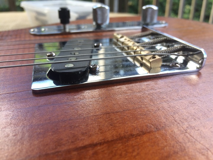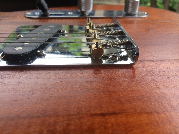 Minor Problem #2. Somehow I screwed up the neck pocket and the neck sits way too low in the body so I should probably sort out some shims for it. But as the shims would be more than a few mm thick they would be noticeable and detract from the overall finish. I had bought some brass compensated saddles so I thought I would just flatten the bottom of the saddles so they would sit lower. They were not expensive and if it doesn’t work I’ll just buy some more and shim the neck as a last resort.