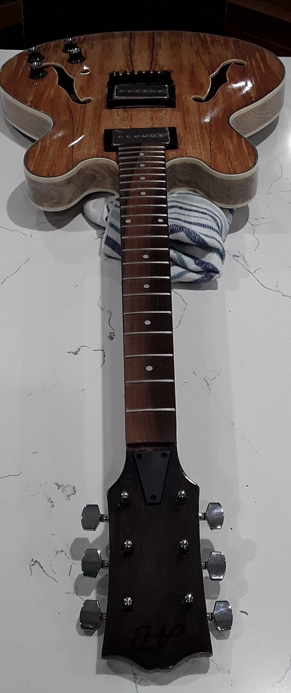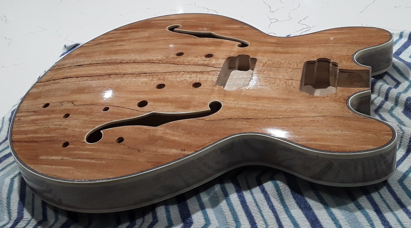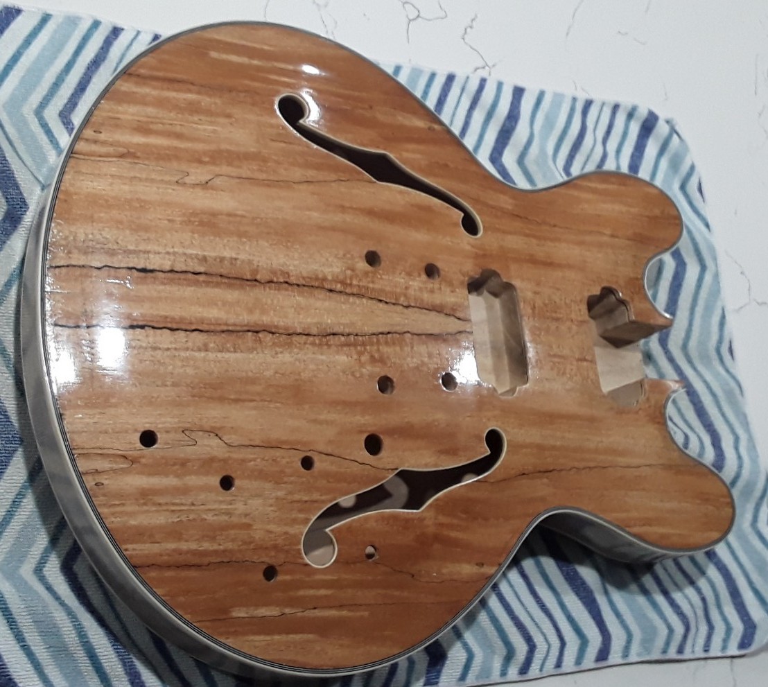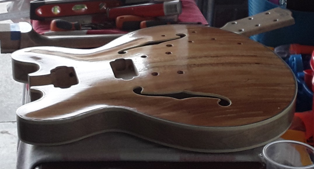All polished up and ready to glue neck on just waiting for the black hardware to arrive