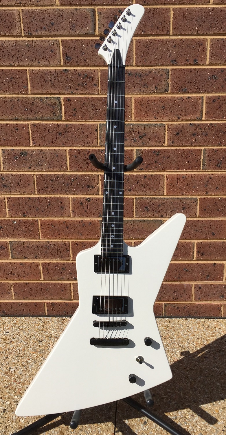An inspired beastie. Clever mods, extreme headstock shaping and the "3D" black with the grain showing through. It deserves a name, or yours, on the headstock.