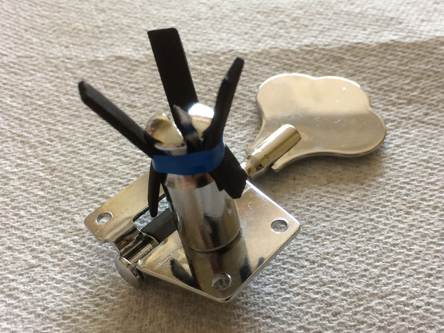 At this point I realised that there is a bit of play between the ferrule and the tuning post so I taped three pieces of 1.75mm foam around each post so that I could centre each peg in each ferrule then line up the rear plates and handles to my satisfaction (I'm a bit fussy about things like that!)