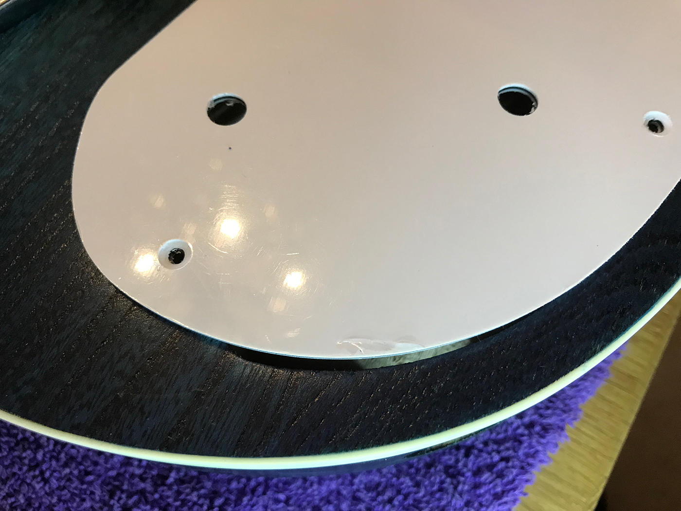 I can't decide whether to fit the pick up cover as I've never played with one on and have hated drilling every hole through the finish! Here's some pics with it in place: