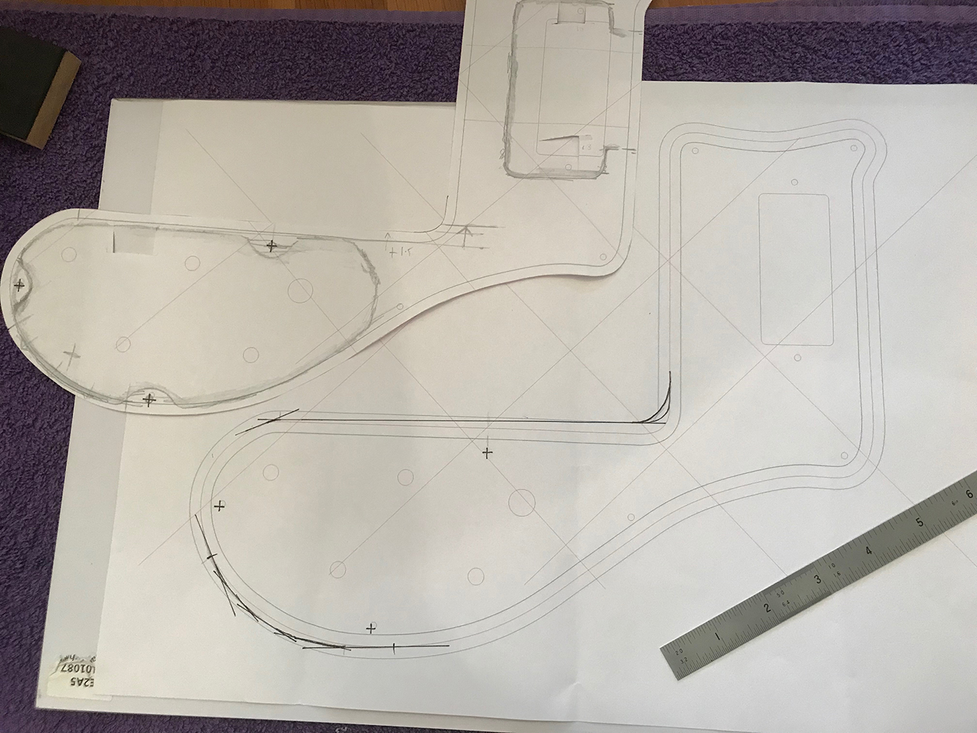 It would have fitted perfectly if the neck was fully inserted into the pocket. BEWARE! So off to order some scrathplate material and start drawing...