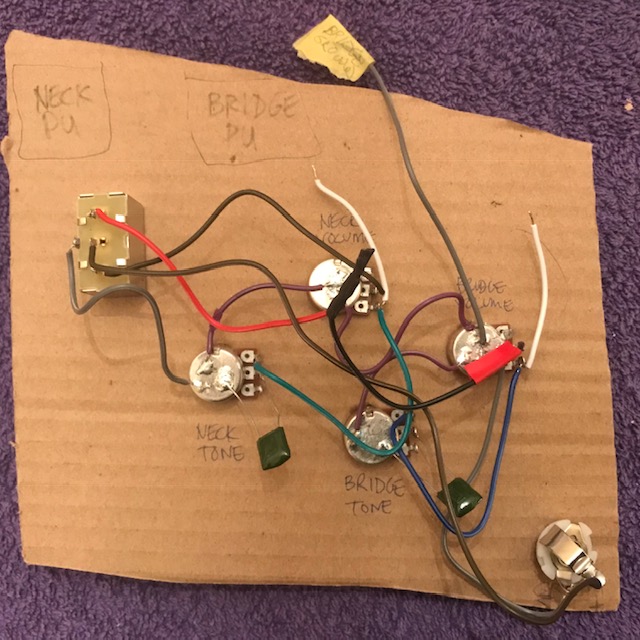 The only issues were when the switch was selecting both pick ups there was a slight dip in volume and also with both pups selected, when either volume pot was zeroed it killed all sound (below last 10% of travel). I don’t know if that’s to be expected with these components? (I doubt) but the tones were clean and clear and good differentiation between pups.