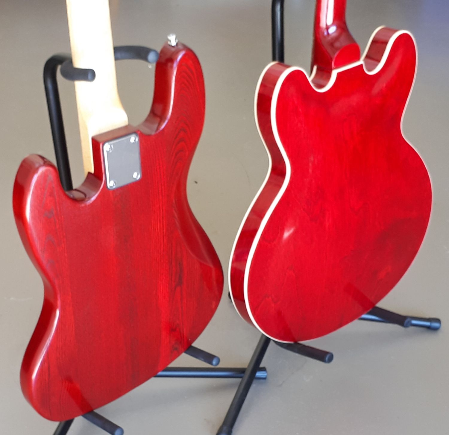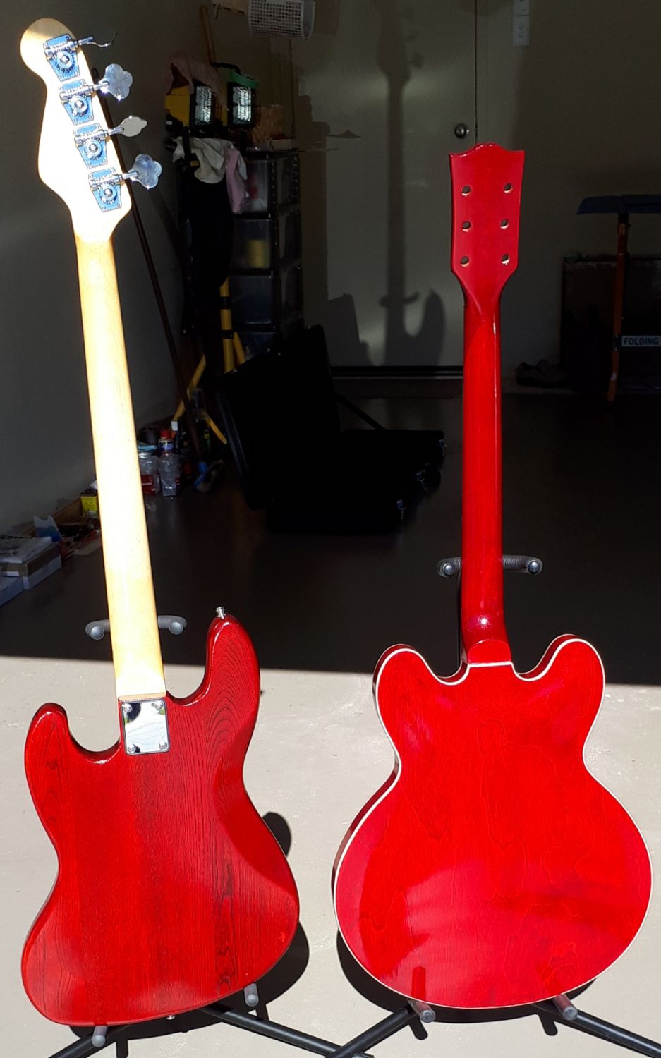 Bit washed out in the bright sunlight and brought my Red J Bass out to serve as a comparison of the 2 colours. The ES1 is darker on top, similar on sides with maybe a slight hint of more cherry on the back.