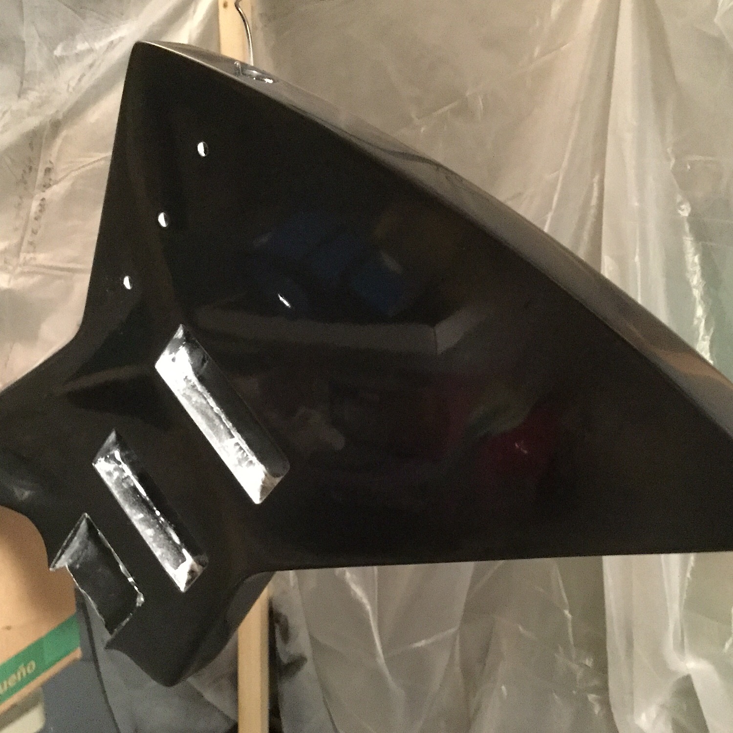 A while back we had a dry sunny day so I sprayed the body with satin black paint and about 3 coats of satin clear coat. I’m not gonna lie. It looked terrible. It cured and now I’ve wet sanded it with 1000 grit paper. It is freakin smooth to the touch and no paint came off from the sanding. I am using lousy Krylon paint from ACE hardware.