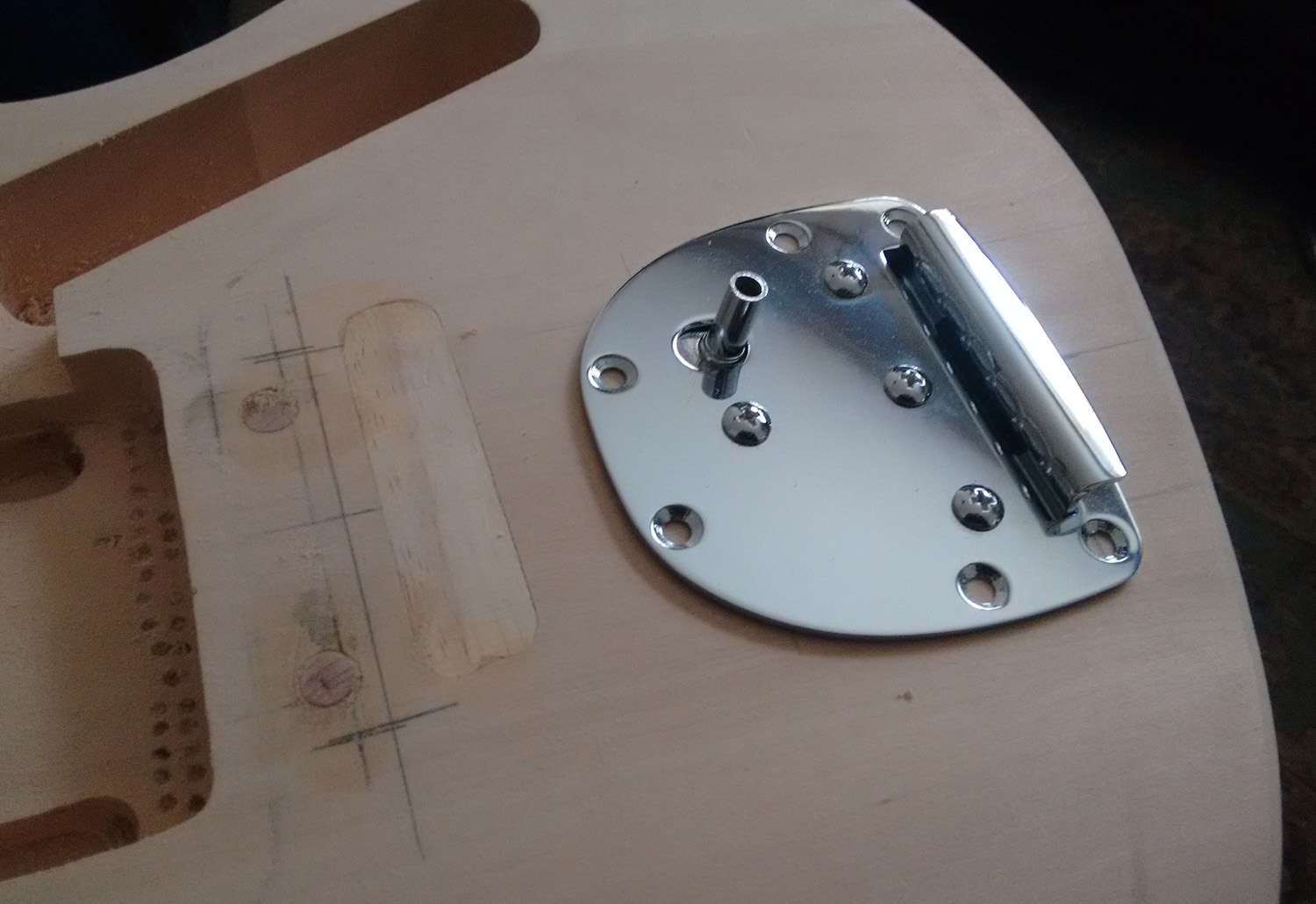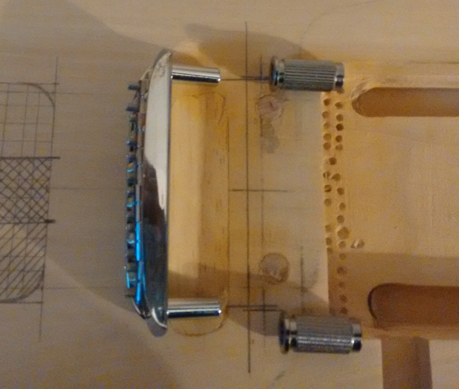 As a work-around I'll drill the first holes to accommodate just the bridge without the studs. and once satisfied that it's sitting correctly, I'll enlarge the holes to fit the studs. (After the body has been finished).
