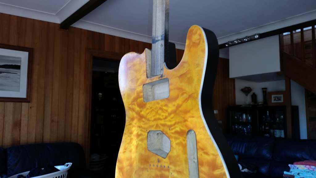 Definitely passes the 3 metre test as it is, I'll give the airbrush a run on some pine that has CG on it and if I'm happy and confident I'll push on with the burst, otherwise it will be what it is