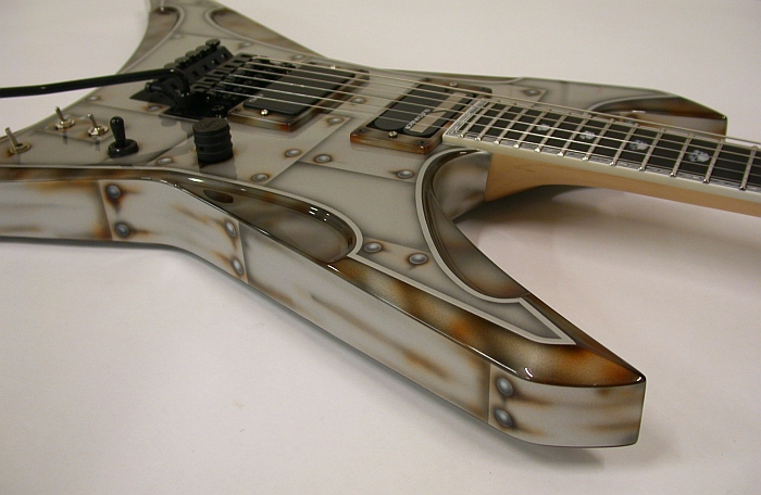 I'm surprised no one has thought to include this one, Joe Satriani's Ibanez Chrome Silver Surfer guitar:Attachment 6503
