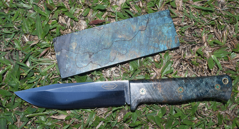 I sent this knife blank( finished high end Falkniven blade) to a friend in WA to make handles for it. I also sent some brass mosaic tube and a block of dyed spalted maple. This is what he sent back along with the left over wood which , when my plug cutters arrive will get made into fretboard markers.