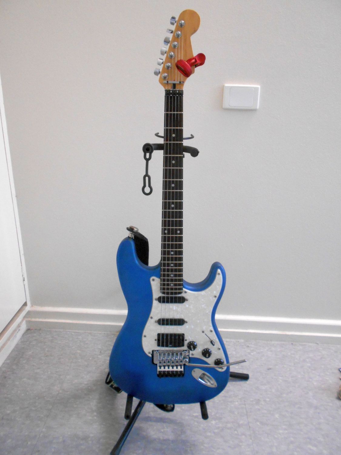 So, I went to the Pro Music shop here in Darwin to buy some more strings and bought a 3 pack of DÁddario 42-09 gauge strings (my usual gauge for strat style guitars), and proceeded to give my Hot Rod strat a good setup after installing the new strings, after playing the Hot Rod strat through my Marshall amp for a couple of hours, or so it seemed, I was a happy chappy, the guitar really sounds like it has come alive, it sounds big and fat, but still has the Strat sound, the pickups all seem to work much better now that I have the INF4 humbucker installed in the bridge position, and yes it is even staying in tune now, I only had to tweak one of the fine tuners a small amount, nowhere near as much tweaking as I had to do before, it even does the gargle effect if I flick the trem arm, I also realized that I was going about the process of tuning-up a Floyd equipped guitar all wrong too, you tune the guitar as close to in-tune as you can get it, once that's done you put the string-locks on, but don't do them up too tight, after that you simply use the fine-tuners to fine-tune the guitar's tuning and that's it, so consider myself re-educated.