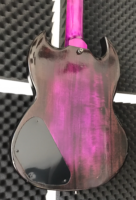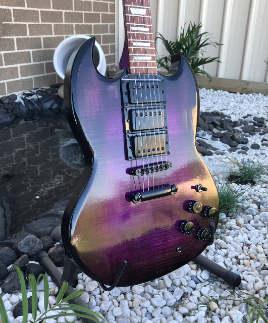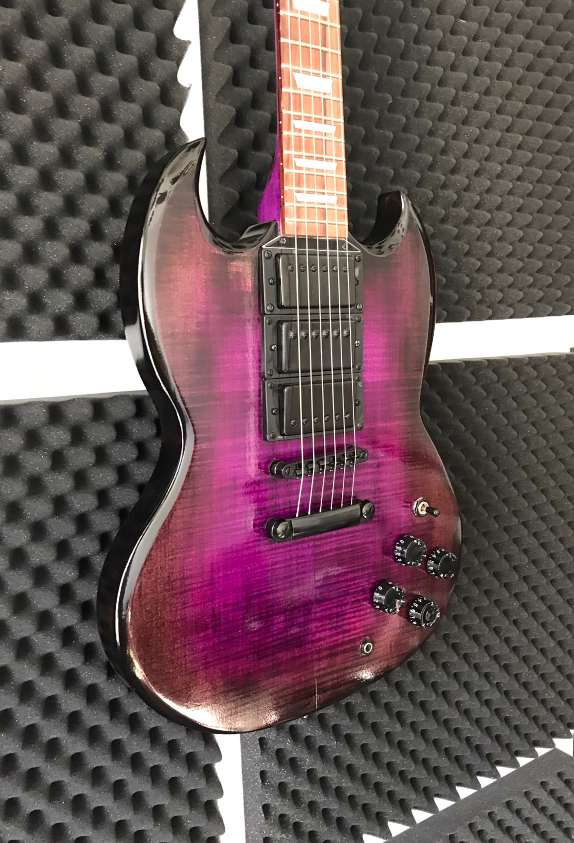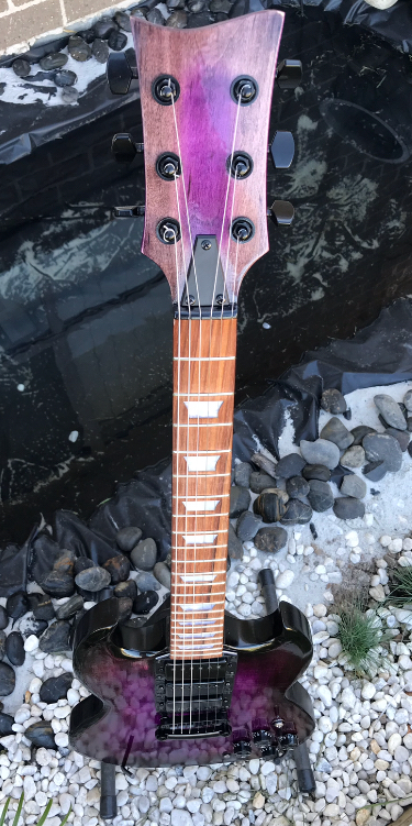 What a stunner! The black hardware works so well on the purple and the third pickup really makes it look like a beast!