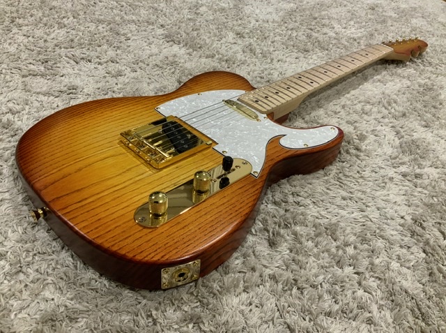 Wow, what a stunning slab of timber to work with and love the burst colour scheme. Gold hardware looks great but not completely sold on the stain on front & rear of headstock as that makes the neck and fretboard look a bit stark & plain which is a shame as the rear of neck appeared to have some good grain to work with. Wave shaped headstock and pick guard work well and the tummy cut looks like that how it came from the factory. Well done.