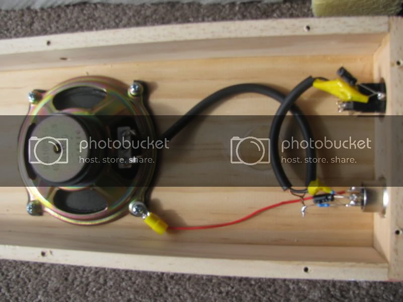 Plan 1 for the speaker is to fit the piezo transducer, a small amp and the speaker all in the box, to see if an all in one solution can be made. I suspect the thump would be less than satisfying, but it might work for home use. Feedback might be an issue though. OK, ditch plan 1.