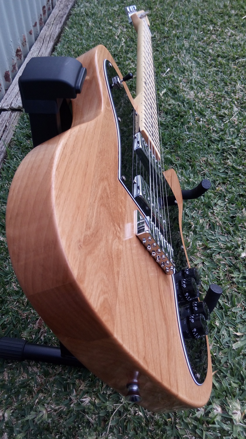 Some final glamour shots. I also tuned it up and played it. I'm absolutely gobsmacked just how nice it feels and sounds. No hum, not fret buzz, and the response from the volume and tone controllers all works as expected.