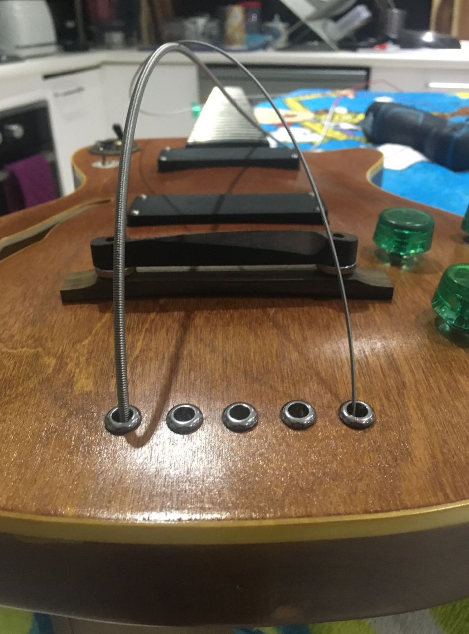 Oh, and I have noticed a few of the semi-hollow guitars have their wiring visible through the hole. Mine was the same and it has been annoying me. So to sort it out, I have moved it. I used this sealant. It sets clear and is non-toxic. Fullers Ultra-Clear. Great product.