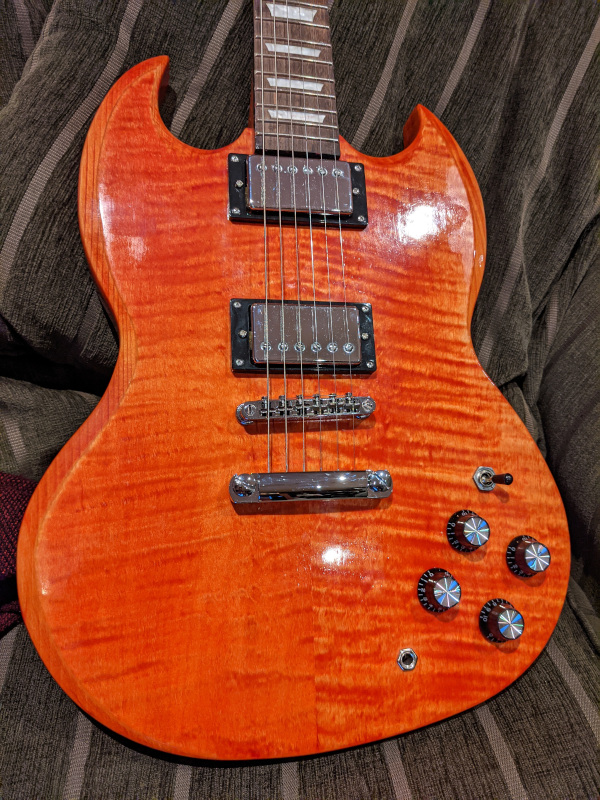 Note that the 3-pickup SGs will need extra pots and or switches to work properly, as they come with a standard 2-pickup wiring kit (no idea why). There are 2 configuration options, three volumes one tone (which needs at least one new audio taper pot) but you can use the standard kit switch, or two volume two tone (as per the original 3-pup SG) but you need a special configuration Switchcraft lever switch to do that. But if you are fitting better pickups, then I'd replace the kit electrics anyway. Plenty of room in the SG control cavity for full-sized pots.