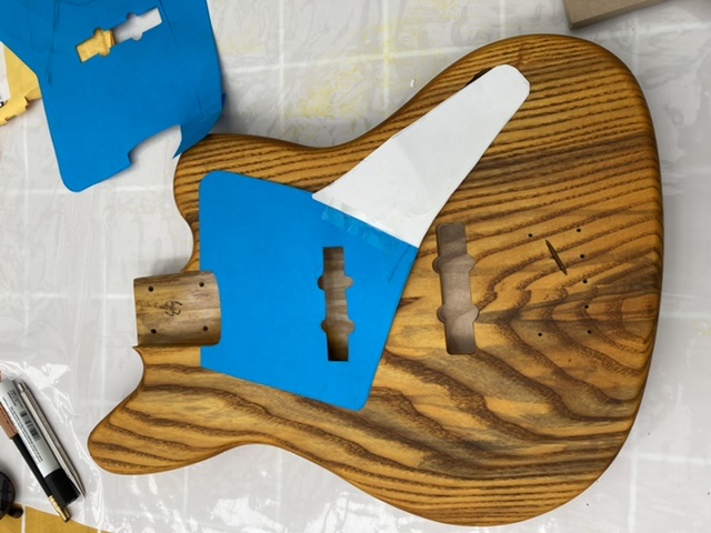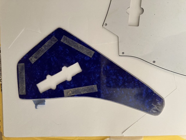 Here are a few I played with. The pickguard material is dark blue pearloid. I also made some two tone mock-ups where I considered reusing the original white material.