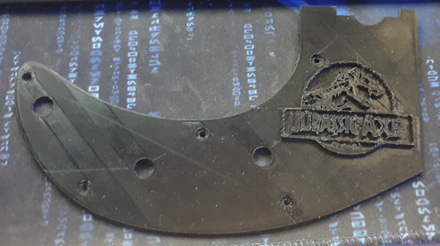 Minimalist pick guard prototype 2 was in improvement over the first, but the logo is just too fine so the printer is struggling with it. It doesn't look anywhere near as bad in person as it does blown up by the camera. There are two rings around the logo - the outer is very fine. I'm going to have a crack at merging that into a thick layer and see if I can make that whole edge look a bit better. The fine detail around the text and the Rex don't look so bad and hopefully a coat of paint will help that along a bit.