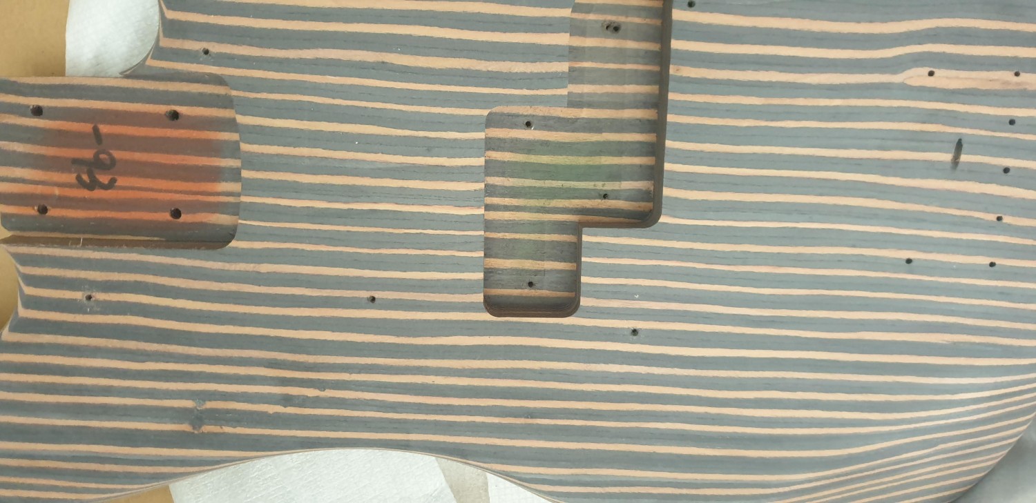 The TO layer count is currently 2 - I noted that the stain really doesn't seem to bleed in all that far (I also tried it on an off cut of the headstock and it didn't go far on the maple either), so I figured I'll build up a bit of TO before I start taking to it with sandpaper again.