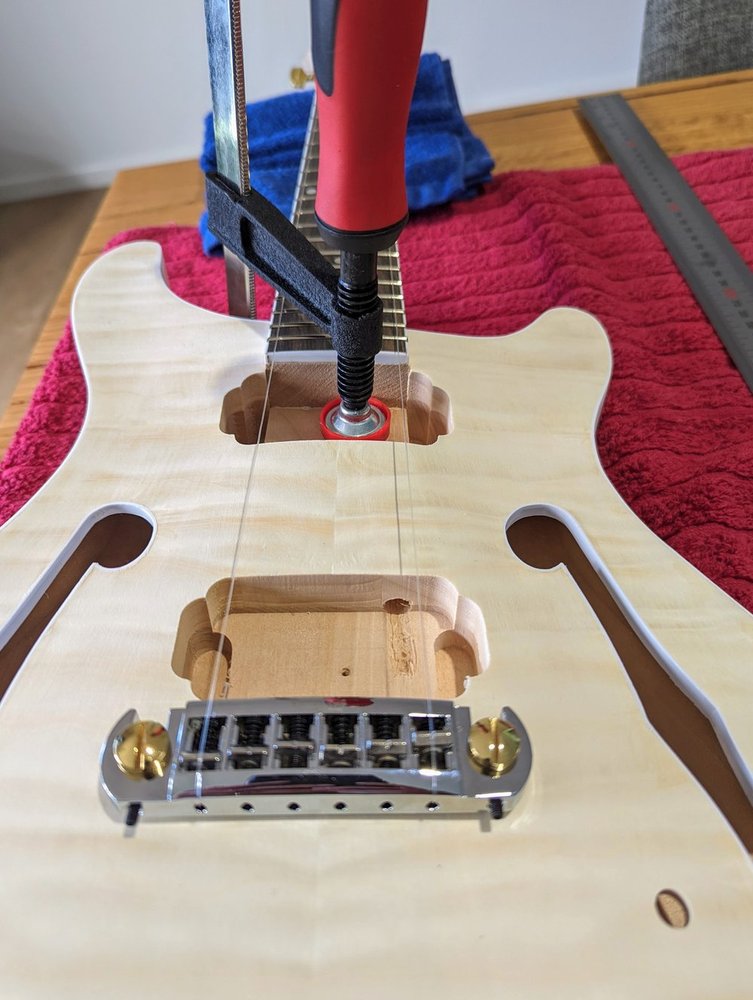 I've watched yours and Vivek's build diarys with keen interest. I am waiting for my replacement wrap around bridge and will fit the bone nut before I start assessing how the neck angle is.Quote:
