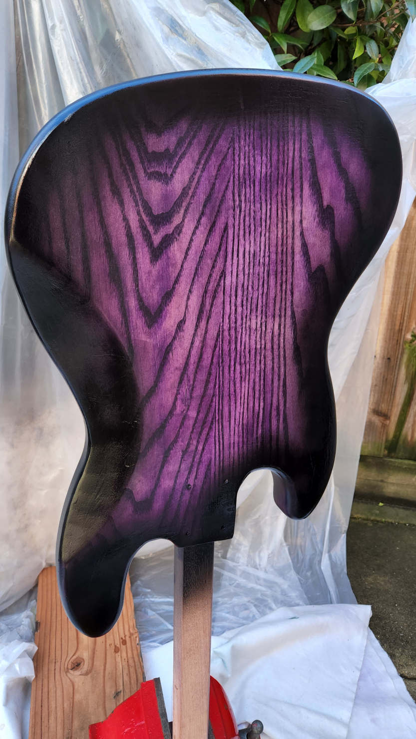 I'd sand the clear back flat as much as possible before spraying the edges black. It will make like so much easier when sanding the final clear coats. You'll also want the surface to be slightly rough (say P600) so that the fresh clear will adhere to the cured clear. There's no strong solvent in acrylic, unlike with nitrocellulose, so the new layer won't melt into a cured layer, it will sit on top. If it remains shiny, there's not a lot for the finish to grab onto, and it can delaminate over time or if knocked. So a sanded surface is much better for the acrylic to grip to.