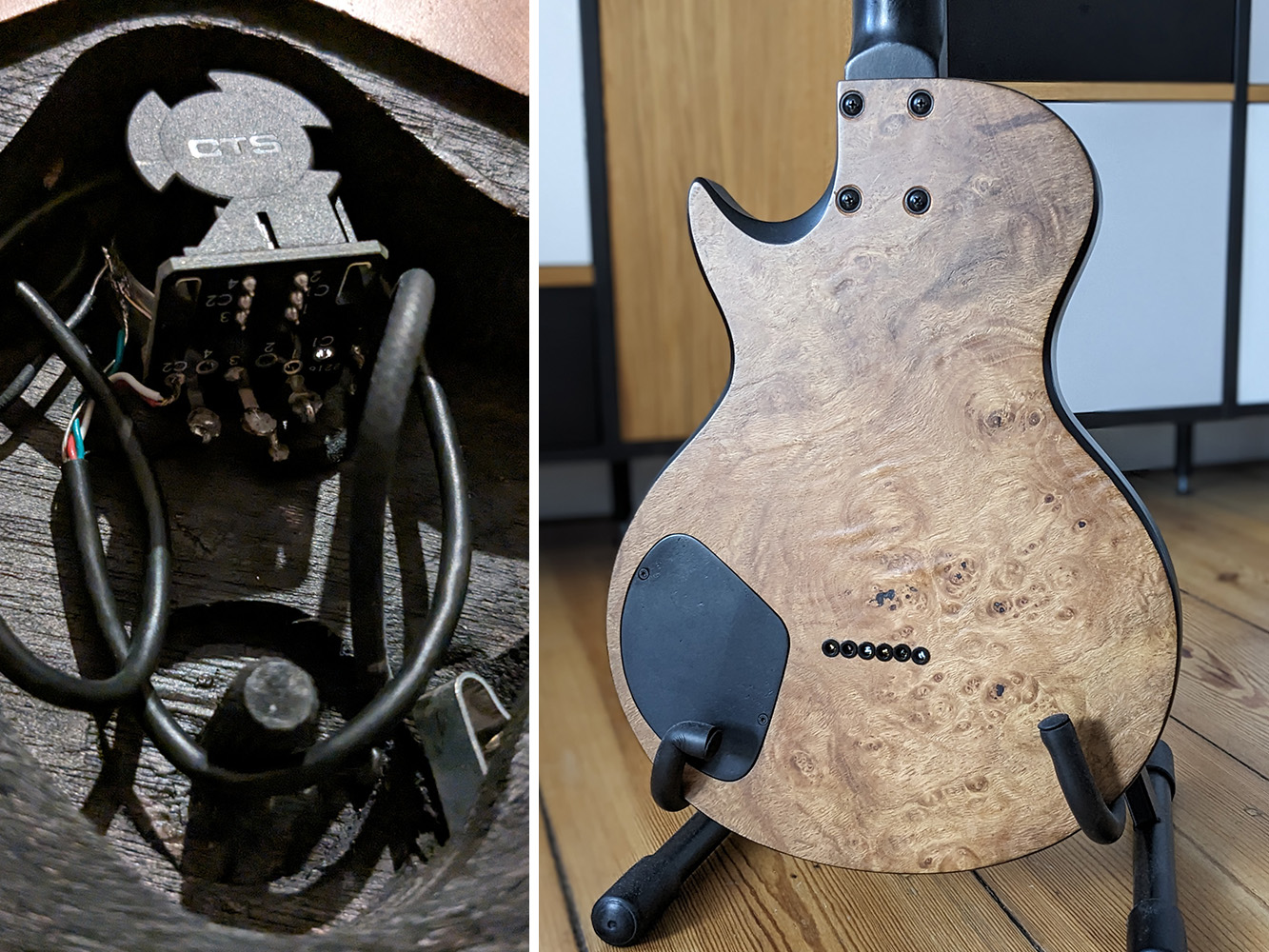 For it will be a string through, maybe the one with gold is better for the string angle, or does this not matter? I also question myself what is the right distance for the stringthrough holes after the bridge? Actually main thing is that it is not too short (cause of angle), but it could easyly be 3 to 5cm I suppose, is there something else to take into account?