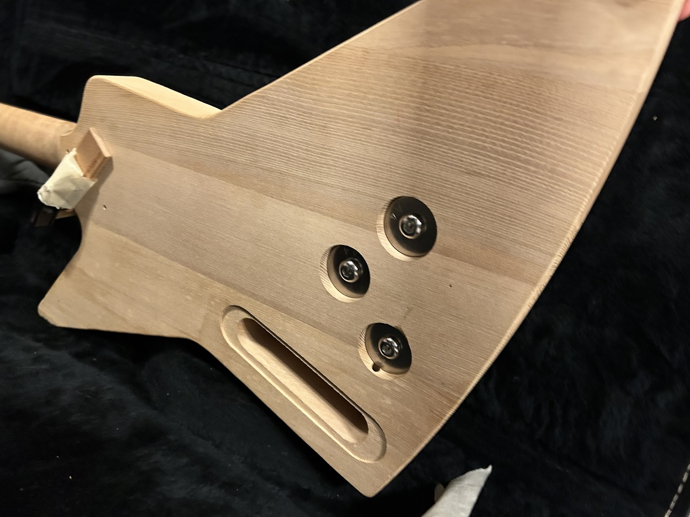 I am not sure why we don't see more bridges bolted on from the back. It seems like a great way of making the connection very solid, particularly on a bass or a 12 string or axes with high string tension.