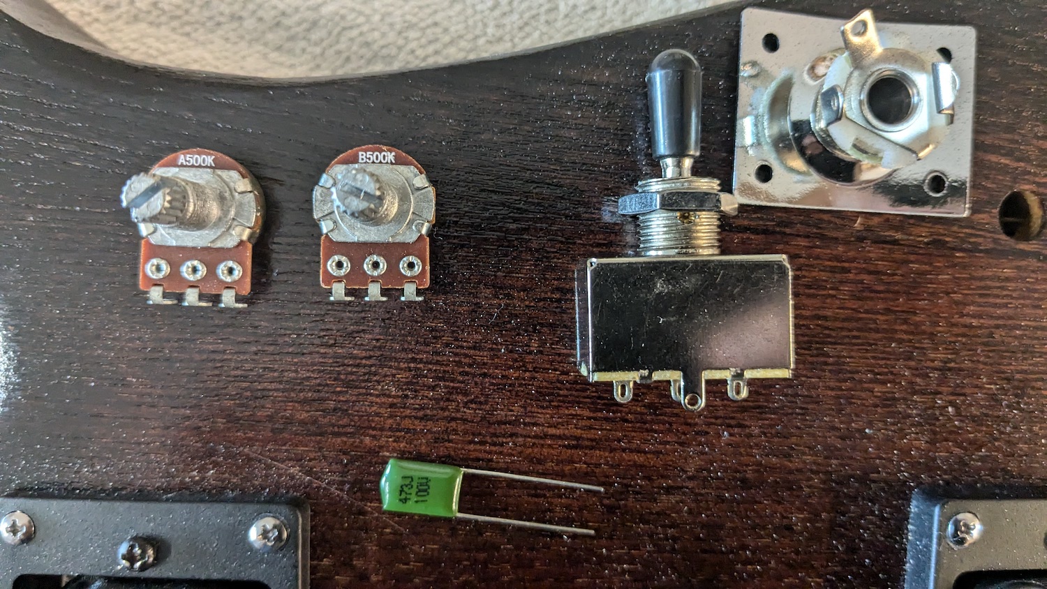 the B500k linear pot was used for the volume, the A500k logarithmic pot for the tone