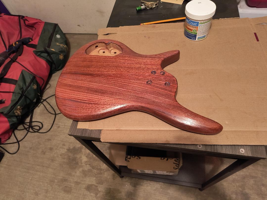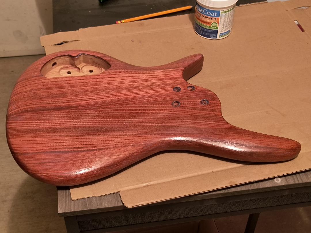 I just finished putting a coat of Crystalac grain filler on the front, kind of as a test to see if it caused reactivation of the stain. It did, but not much, and the stain on the front was fairly heavy (I did not give it the same treatment as the back and sides since I will put a decal on the front). Right now, I'm researching the Platina dewaxed shellac that you mentioned earlier. I see it comes in a "flake" form, so I'll have to see if that's something I can figure out how to work with.