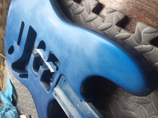 So my finish was coming along quite nicely, thin coats, of nitro, primer, lake placid blue, then started on the coats of lacquer looking good, no orange peel.......