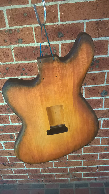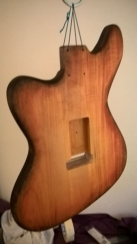 hey BH the neck looks unreal I love the colour you got. If it's too bright for your taste sand it back a bit and add a bit more OS in the mix for next coat. That may suit the body colour better